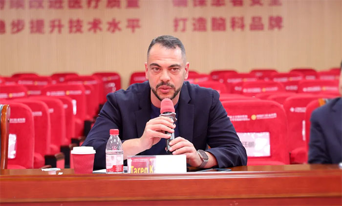 在持续两小时的座谈中,双方围绕癫痫中心标准化建设、多学科协作(MDT)模式、功能神经外科技术难点、脑血管病介入并发症防治、神经重症管理、脑机接口与神经调控新技术、激光间质热疗(LITT)的应用前景等议题展开深度对话。Tareq Kass-Hout副教授、David Satzer博士分享了国际先进的诊疗理念、技术流程和管理经验,朱敏书记、周克祥副院长、学术副院长兼脑血管病科主任席刚明教授、脑血管病一科4A病区副主任王贵平博士,神经内科专家李振东、神经外一科6A病区副主任李志强等专家领导也结合临床实践参与讨论,现场交流热烈,为后续精准合作奠定坚实基础。