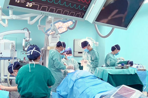 侯增欣主任及助手给患者肿瘤切除寻找入路