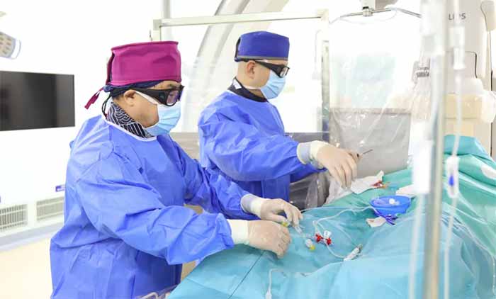 ▲ 席刚明教授、王贵平博士在为患者手术