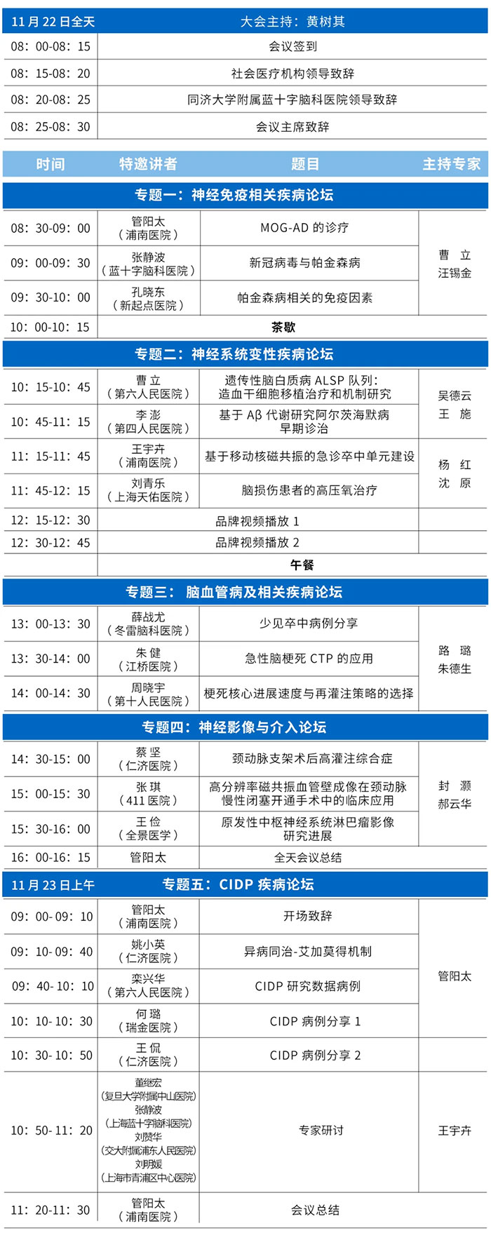 本次大会将围绕神经免疫疾病、神经系统变性疾病、脑血管病、神经影像与介入、CIDP疾病等热点专题展开深入探讨,特邀神经内科、神经外科、神经影像、神经介入等多学科知名专家进行专题报告与病例分享,旨在搭建高水平的学术交流平台,传递前沿进展,分享临床经验,共谋学科发展。
