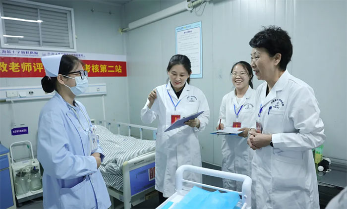 在急诊科、4B脑血管病二科、10楼综合内科……专家组成员的检查工作高效而忙碌地开展着。通过现场查验科室教学计划、带教师资、教学大纲和教学记录,开展满意度评价等,详细了解科室临床护理教学情况。