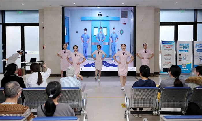 为进一步增强科普效果,活动还设置视频展播与互动教学环节。上海蓝十字脑科医院5A神经内二科李兰馨护士长团队带来曾获2024年闵行区护理科普讲解大赛三等奖的科普作品《动起来,不要被“栓”住》。该作品以真实案例为切入点,通过生动视频画面与通俗解说,将专业血栓知识转化为易懂的生活常识。随后,李兰馨护士长团队现场演示“预防深静脉血栓操”,并带领观众跟练。现场气氛活跃,不少患者反馈:“动作简单实用,在床上就能练习,非常方便!”