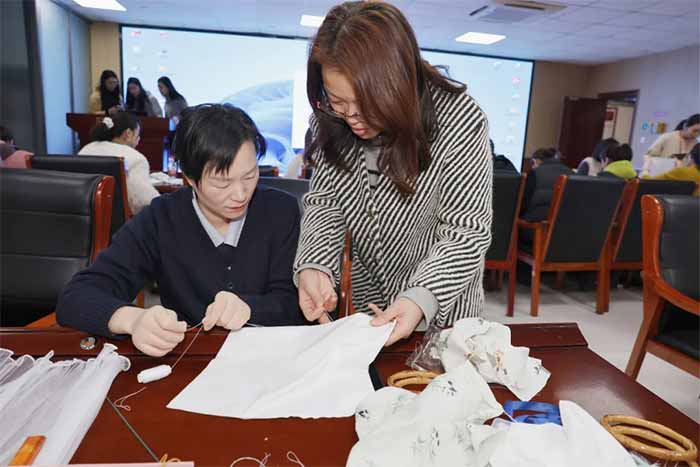 过程中,国风竹节包DIY组的女同胞们穿针、引线、拼接、缝制,认真投入;另一边制作郁金香花束的女同胞们则巧手翻飞,用扭扭棒折叠出朵朵绽放的郁金香。现场气氛轻松而热烈,大家彼此交流步骤技巧、分享制作心得,互帮互助、其乐融融。