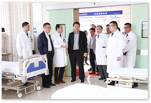 我院3台DSA,3台核磁,2台CT,1台DR等强大的影像设备配置及规模宏大的高压氧舱群,两位主任也给予了极大的关注。整个考察过程,蓝十字脑科医院先进的设施设备、科学的管理模式、专业的专家团队及人性化的服务得到了两位主任的认可,杭主任感慨道:“蓝十字脑科医院十分舍得投入,一般医院是难以做到的!”